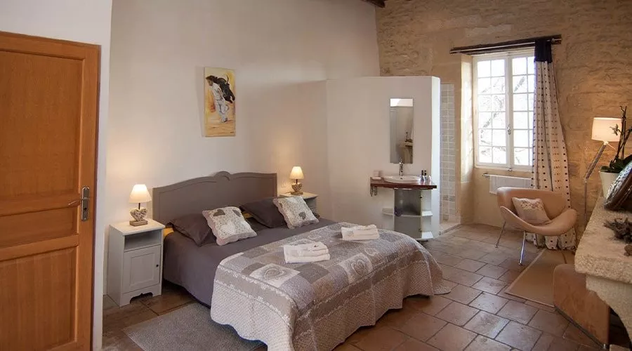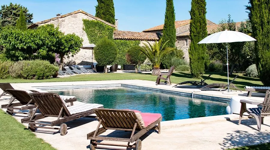 Ancienne dépendance du château de Villevieille (monument historique classé), ce mas en pierre du 14e siècle a été entièrement rénové avec goût et dans le respect des règles de l’art. Il bénéficie d’un climat méditerranéen très ensoleillé et d’une flore locale particulièrement riche et diverse. Il est situé à deux pas de trésors du patrimoine romain tels que la ville de Nîmes et le Pont du Gard, classé au Patrimoine Mondial de l’Humanité. Les plages de la Méditerranée et le Massif des Cévennes sont situés à 30 minutes. Toutes les possibilités de couchage sont permises et les chambres sont équipées de lits doubles récents, tous en taille « Queen size » (160 par 200) ou en « King size» (180 par 200), pour un meilleur confort. Les chambres sont de belles proportions : De 20 m² pour une standard, la majorité occupent 30 m², les « suites » agrémentées d’une pièce de vie peuvent atteindre 60 m² au total. Chambres doubles : seul ou à partager avec une personne, avec salle d’eau et WC privatifs, chambres doubles intégrées dans un gîte : seul ou à partager avec une personne, avec salle d’eau commune à deux chambres. Chambres doubles dans une « suite junior » de 30 m² : seul ou à partager avec une personne, avec salle d’eau et WC privatifs. Chambre double dans une « grande suite » de 60 m² : seul ou à partager avec une personne, avec salle d’eau et WC privatifs. Chaque chambre possède un décor personnalisé de style provençal et l’accès à internet. Deux chambres sont équipées de terrasses et tous les gîtes ont des jardins privatifs, d’où vous profiterez de la nature environnante. Le jardin d’agrément est boisé d’oliviers, de chênes blancs et de pins et agrémenté des plantes méditerranéennes emblématiques telles que thym, romarin, lavande… Il abrite une piscine chauffée et un terrain de pétanque.